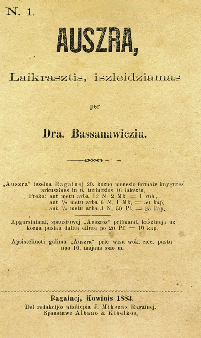 Patyrinėkite laikraščio „Aušra“ viršelį ir atsakykite į klausimus.